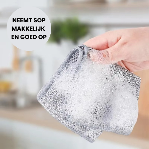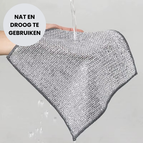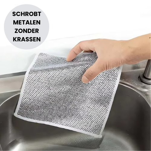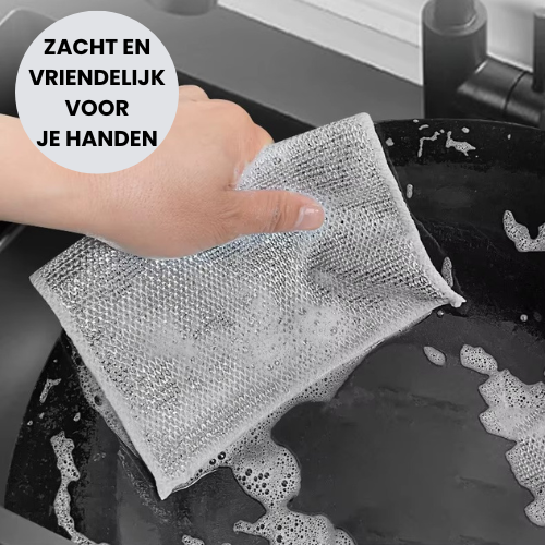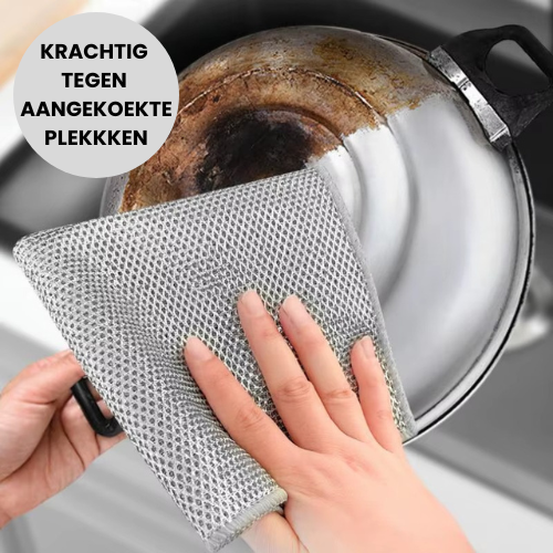 "Holy moly, deze vaatdoek werkt écht! Alles wat vastgekoekt zit, is zó weg. En geen krassen op m'n pannen!" -