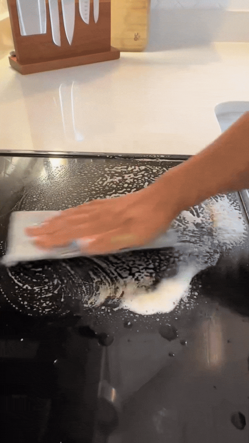 Met de Glasdoek verwijder je moeiteloos aangebrande resten zonder je pannen, wokken of kookplaten te beschadigen.