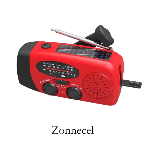Je hebt 3 opties: zonnepaneel, handslinger, of USB-kabel. Kies wat op dat moment het handigst is. Zo heb je bij elke noodsituatie stroom.