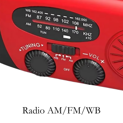 De noodradio ontvangt FM, AM en WB (weerberichten). Blijf altijd op de hoogte tijdens stroomuitval, noodweer of andere crisissituaties.