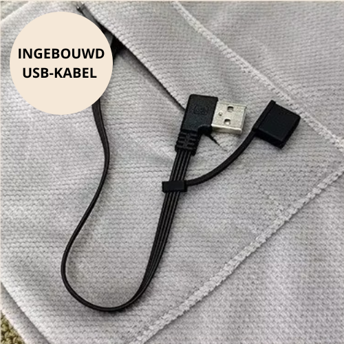 Je sluit hem eenvoudig aan via USB op een powerbank, laptop of adapter en hij geeft direct warmte.